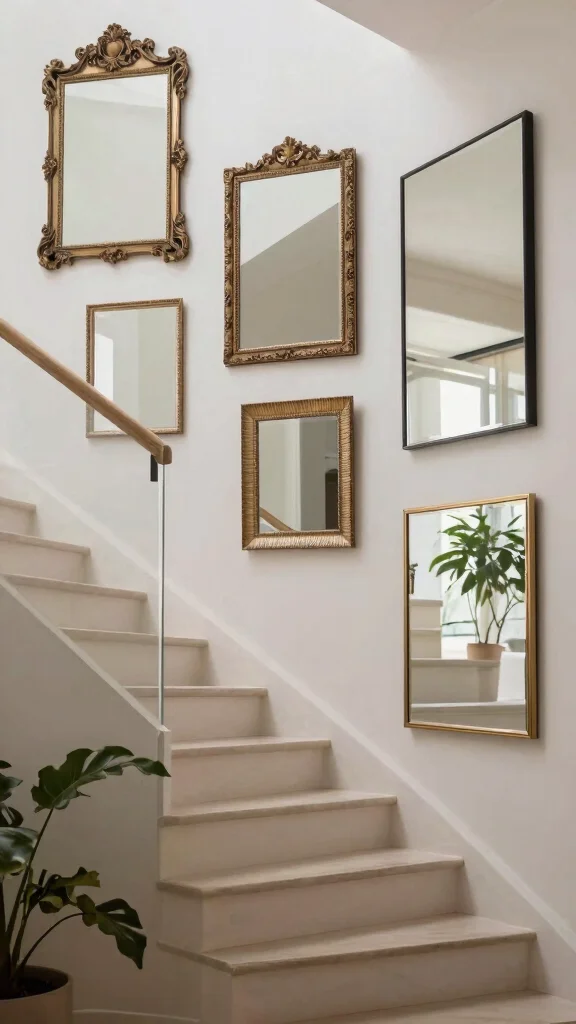 Mirrors are a fantastic way to make your staircase feel larger and brighter. Strategically placing mirrors along the walls can enhance natural light and create an illusion of space, making your stairs feel more open and airy.