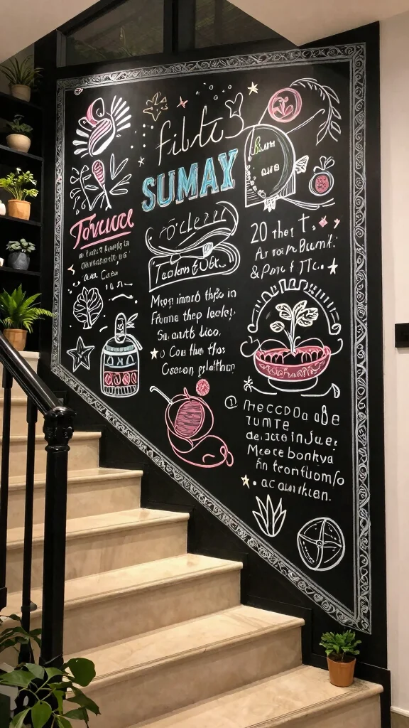 For a playful touch, consider creating a chalkboard or message wall along your staircase. This fun idea invites family members and guests to leave messages, doodles, or reminders, transforming your stairs into a lively and interactive part of your home.