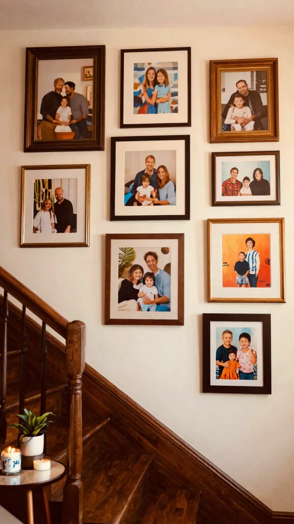 Transform your staircase into a captivating art display by hanging a collection of framed artwork or photographs. This personal touch not only beautifies your space but can also ignite conversations among guests. Select a theme that resonates with you, whether it’s travel memories, family moments, or modern abstract art for a chic twist.