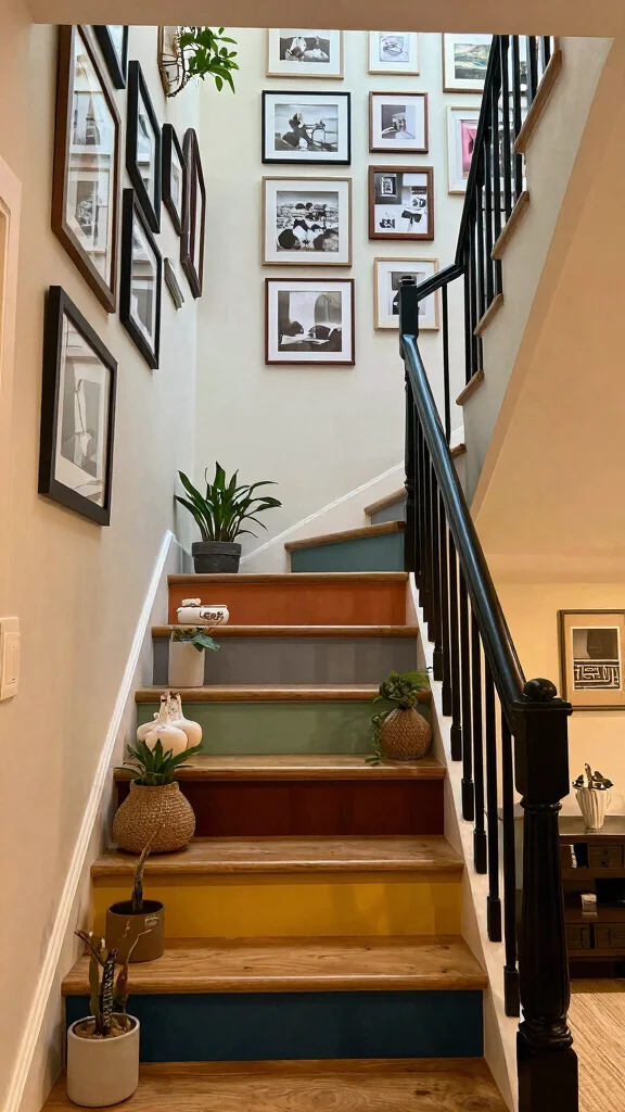 This artistic approach not only enhances visual interest but also allows you to share your story through decor. The combination of creativity and personal expression makes your staircase a unique focal point in your home.