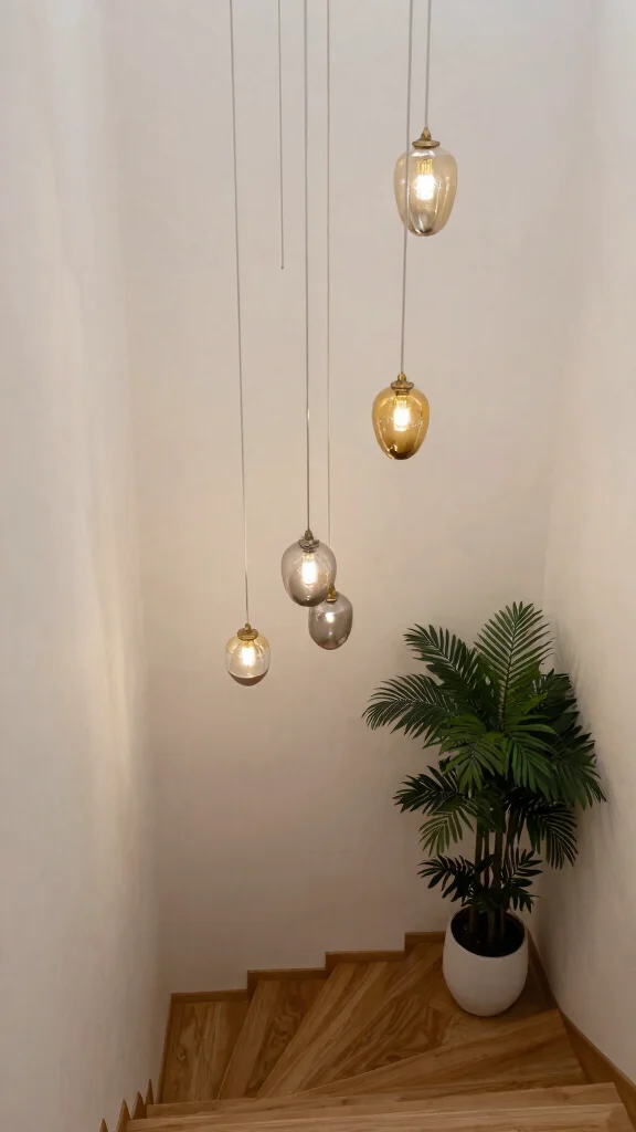Pendant lights can transform your staircase into a captivating focal point, exuding charm and elegance. A large pendant or a cluster of smaller ones can draw the eye upward, enhancing the staircase’s architectural beauty. For instance, think of a stunning glass orb pendant or a series of geometric shapes that resonate with your home’s style, whether it be contemporary or rustic. The interplay of light and shadow creates visual interest that can elevate the entire area.