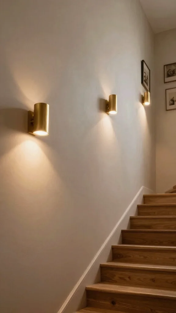 To enhance the visual interest, choose sconces that cast light upwards or downwards for a more dramatic effect. Placing them at eye level can create a beautiful lighting display while ensuring safety on your stairs.