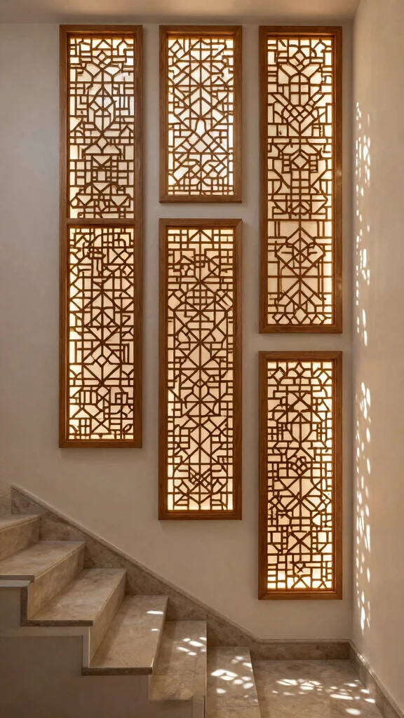 Incorporating decorative wall panels that emit light can add a unique character to your staircase. These panels not only serve as functional lighting but can also stand alone as artistic statements. With designs ranging from geometric patterns to organic shapes, the light filtering through creates captivating shadows and highlights that bring depth to the area.