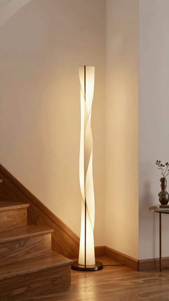 Artful floor lamps on landings turn stairs into a gallery—functional light with personality. Choose adjustable designs or vintage sculptures to match your decor, and watch the stairs light design transform the space from practical passage to a focal point.