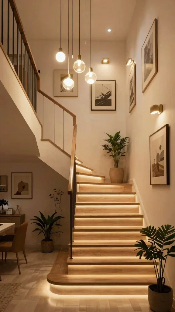 This approach not only provides functional lighting but also elevates the overall aesthetic, showcasing your staircase as a key design element.