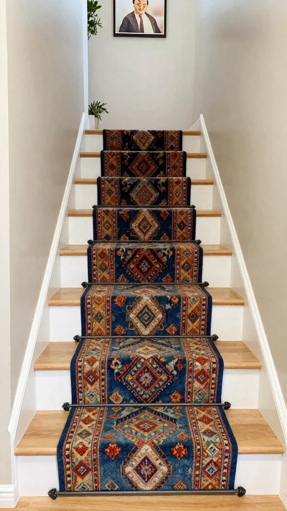 A stylish stair runner adds color and texture to your staircase while improving safety and comfort. This attractive design element softens each step and can serve as a focal point that unifies your space. Picture a vibrant runner that complements your home decor while providing a cozy feel underfoot.
