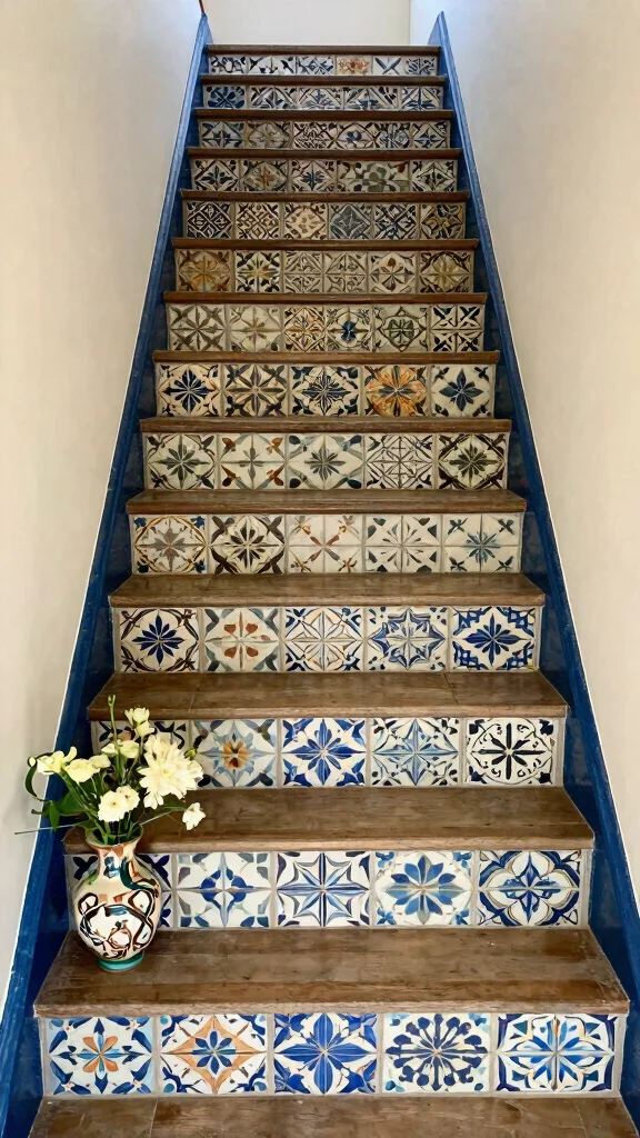 Playing with patterns can transform your stairs into a personal artistic expression. Don’t hesitate to mix styles to craft a captivating visual narrative that enhances your home’s charm.