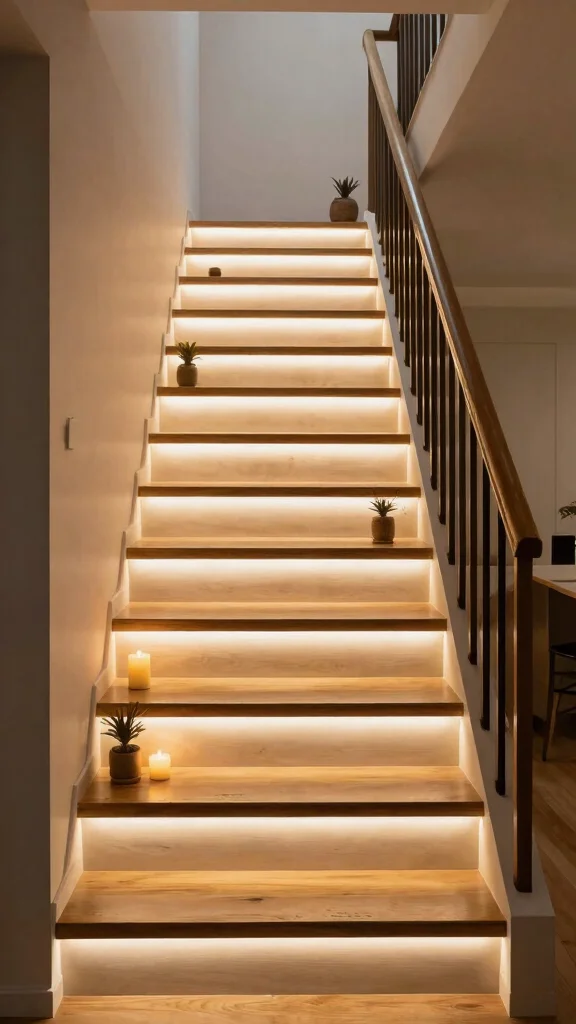 Adding LED lighting along your staircase elevates both safety and style. This energy-efficient solution creates an inviting ambiance while highlighting the architecture of your stairs. Imagine soft, glowing lights illuminating your steps, enhancing the overall atmosphere of your home.