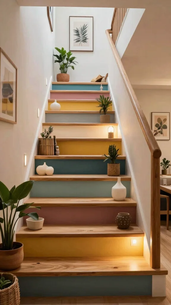 Incorporating patterns into your staircase design can add depth and intrigue. Whether through painted designs or patterned tiles, this approach allows you to showcase your unique style. Picture a bold geometric pattern or vibrant floral tiles that make each step a statement.