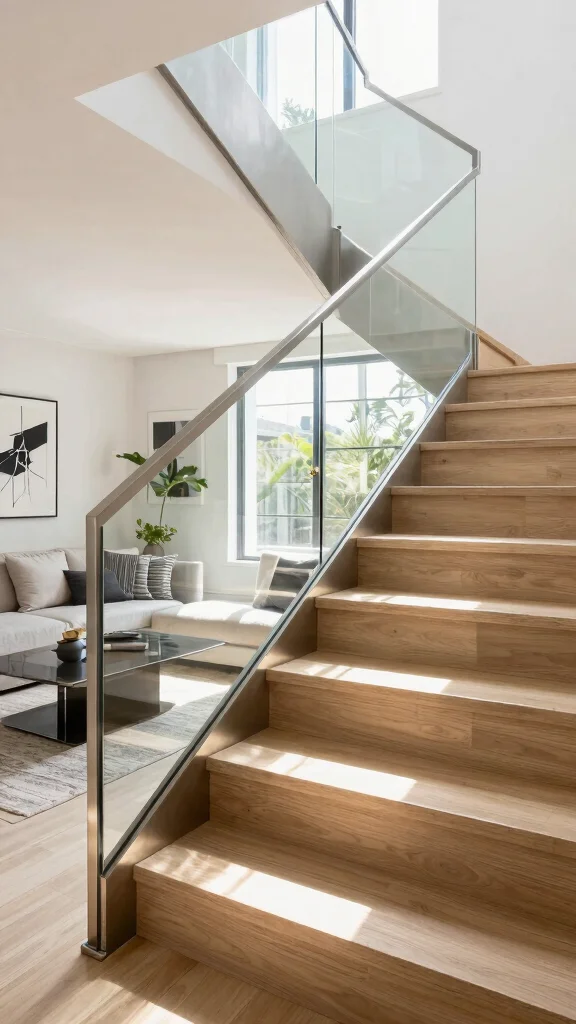 If you’re aiming for a sleek, modern aesthetic, transparent glass railings are an excellent choice. They create an airy atmosphere that beautifully complements any interior design. The way glass allows light to flow through enhances your space, making it feel larger and more open. Imagine a staircase where the view is unobstructed, showcasing artwork or nature outside, all while ensuring safety.
