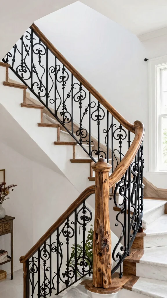 For a touch of timeless elegance, vintage wrought iron railings are unparalleled. Their intricate designs and solid construction add a classic charm to any staircase. Whether painted or left with a rustic finish, these railings enhance safety while elevating your home’s design.