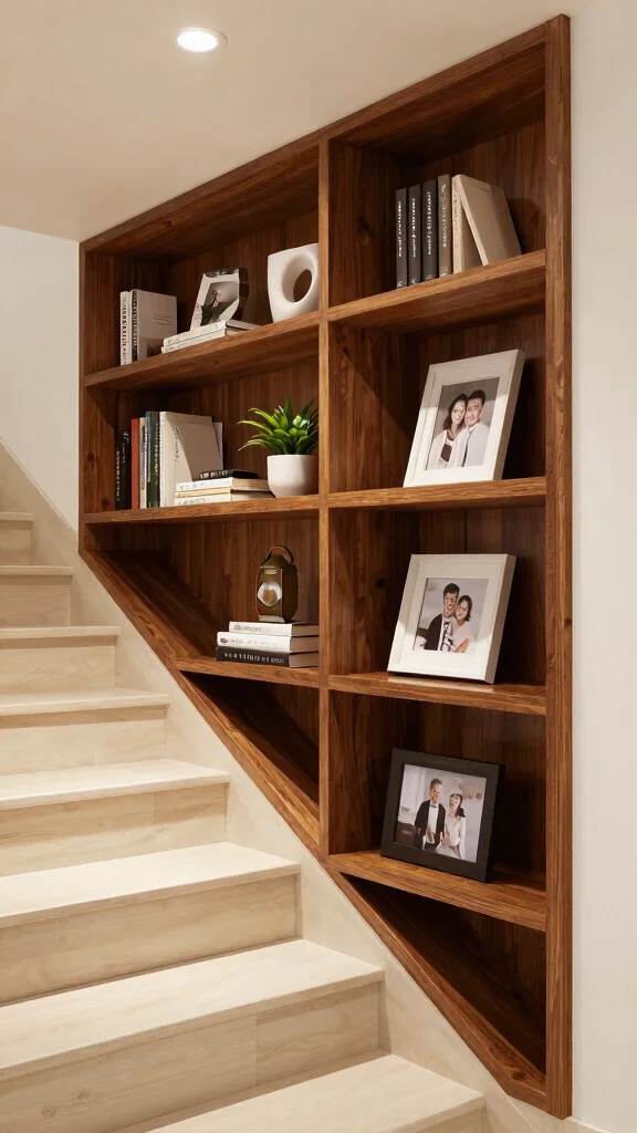 – Stylish Stair Shelves: Discover how sleek shelves can transform your staircase, allowing you to display books or decor without taking up floor space.