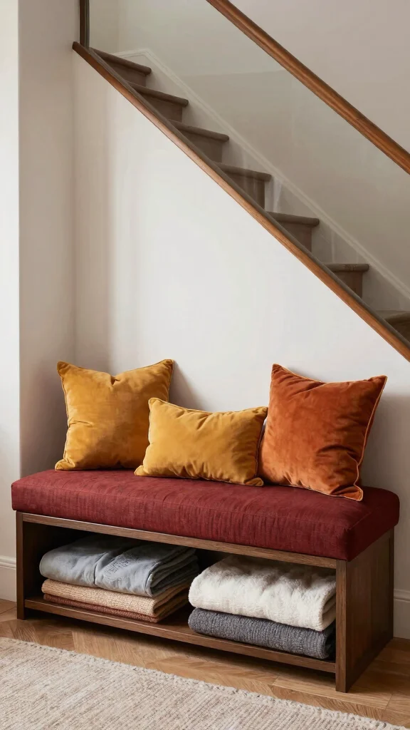 Adding a bench along your staircase introduces both seating and storage to your home. A well-placed bench can serve as a cozy spot for reading or putting on shoes, while also providing storage for blankets or seasonal items. Choose a design that complements your decor style to create an inviting space.