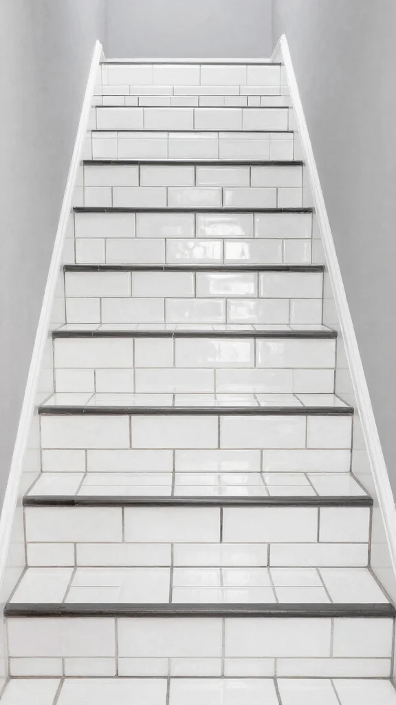Fun fact: Subway tiles on stairs can reflect up to 30% more light, making a narrow staircase feel roomier. Pair with a light grout for extra brightness in stairs tiles design modern.