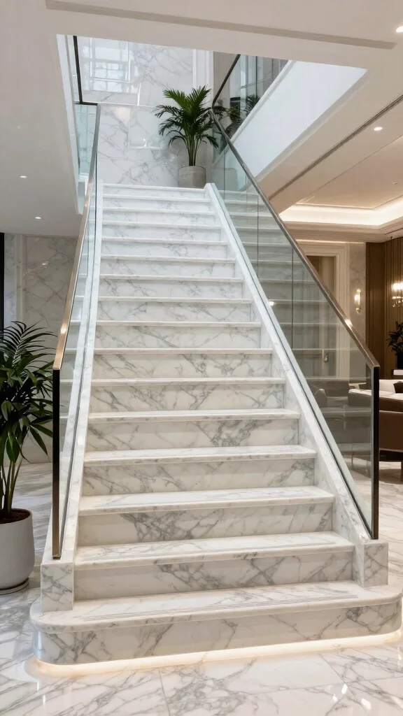 Use marble finishes for a touch of luxury that elevates the overall look of your stairway design.