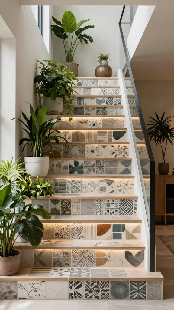 Vintage-inspired tiles can introduce character and charm to your staircase. Often adorned with intricate designs and nostalgic colors, these tiles create beautiful contrasts in modern homes while adding a sense of history. Their unique patterns can turn your stairs into a delightful focal point.