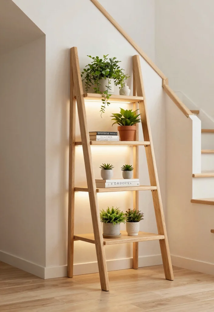 A decorative ladder shelf can elegantly utilize the under stairs space while providing practical storage. These shelves can display books, plants, or decor items, introducing both style and function to your home. Imagine a beautiful ladder that complements your interior design—wood for a rustic charm or metal for a sleek vibe.