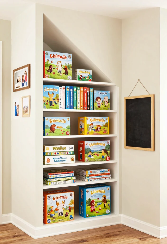 For family-oriented homes, creating a games storage area under the stairs can be both fun and functional. Using shelves or bins, you can keep board games, puzzles, and outdoor equipment organized and ready for family game nights. Picture labeled boxes for easy access, and consider adding a small chalkboard to note the games available for play.