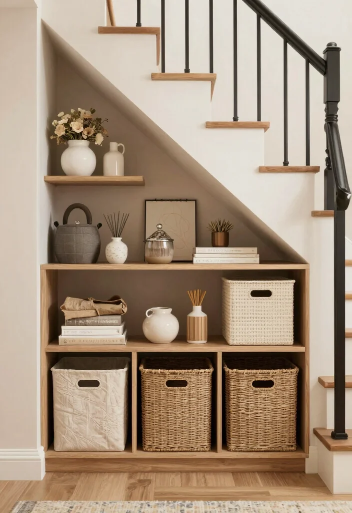 This approach transforms a neglected area into a functional storage space while elevating your home’s style!