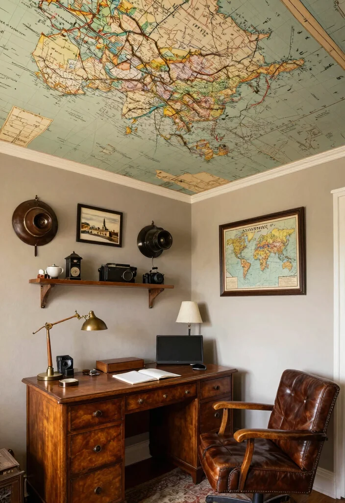 For those with an adventurous spirit, a ceiling adorned with vintage map wallpaper can tell a story of exploration. This theme works wonderfully in home offices, libraries, or study rooms, filling the space with a sense of wanderlust and history. A map ceiling invites inspiration and adds character to your decor.