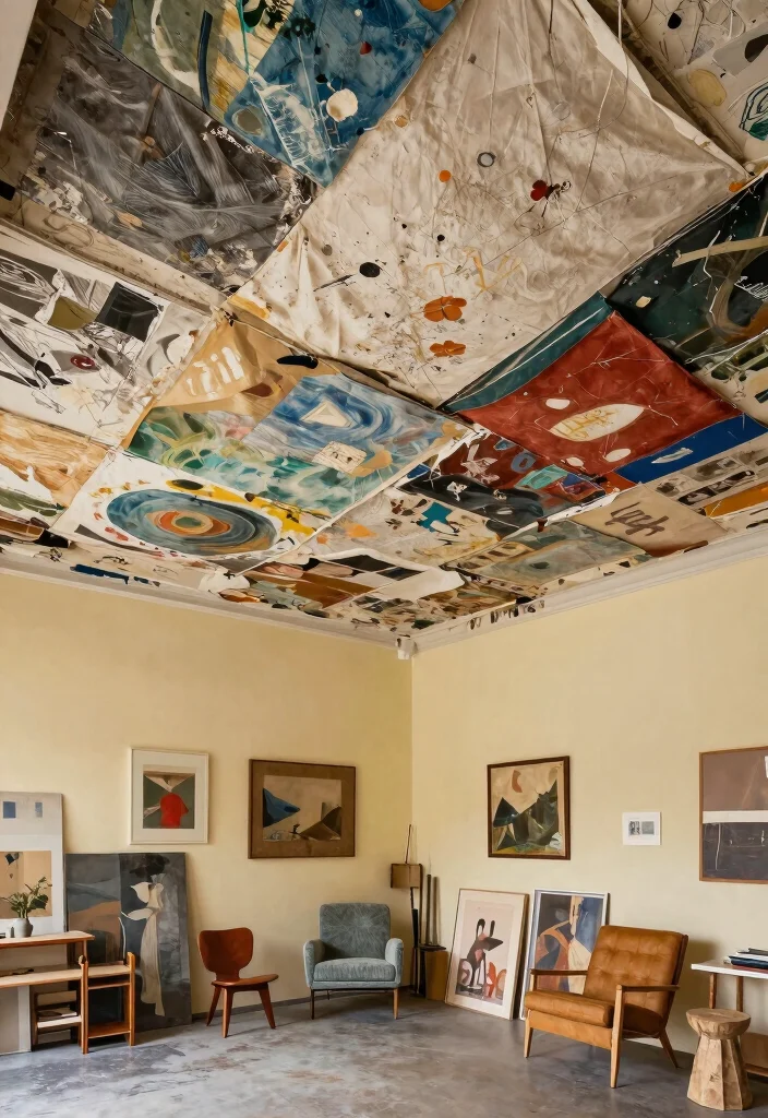 For the creatively inclined, a mixed media ceiling can be an exceptional way to showcase your artistic side. Combining materials like fabric, paper, and paint creates a stunning and unique ceiling design. This option is perfect for creative spaces, such as art studios or eclectic living rooms.
