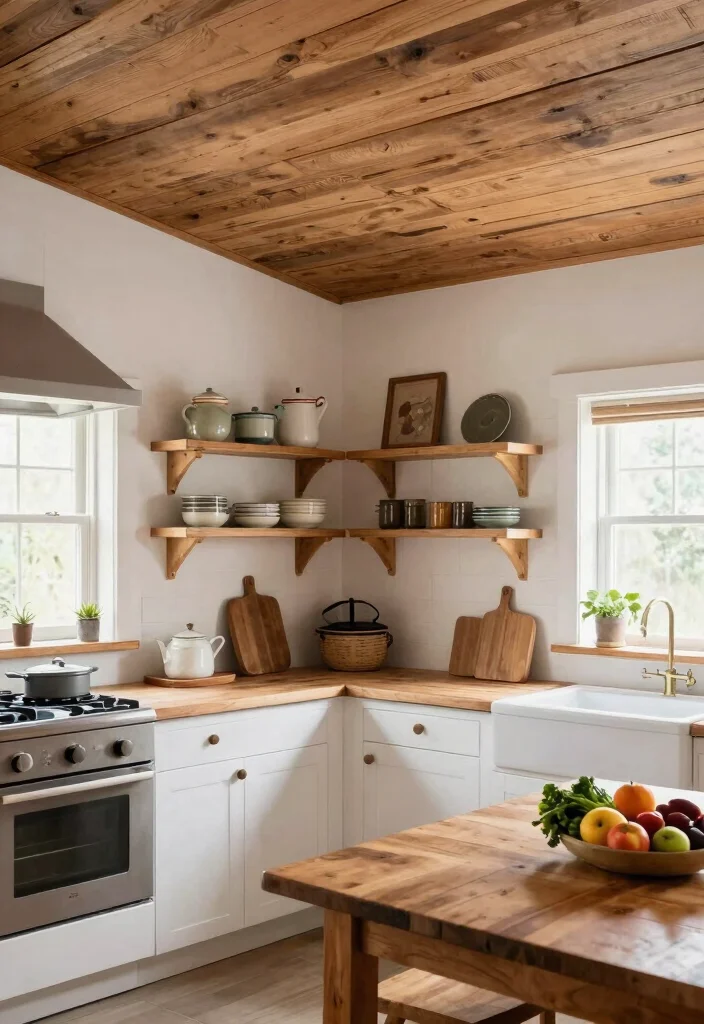 Incorporating textures into your ceiling design adds a cozy, rustic charm that feels welcoming. Vintage-inspired wallpaper with wood or brick effects can create a warm farmhouse vibe, perfect for kitchens or living spaces. This design choice evokes comfort, making your home feel inviting and lived-in.
