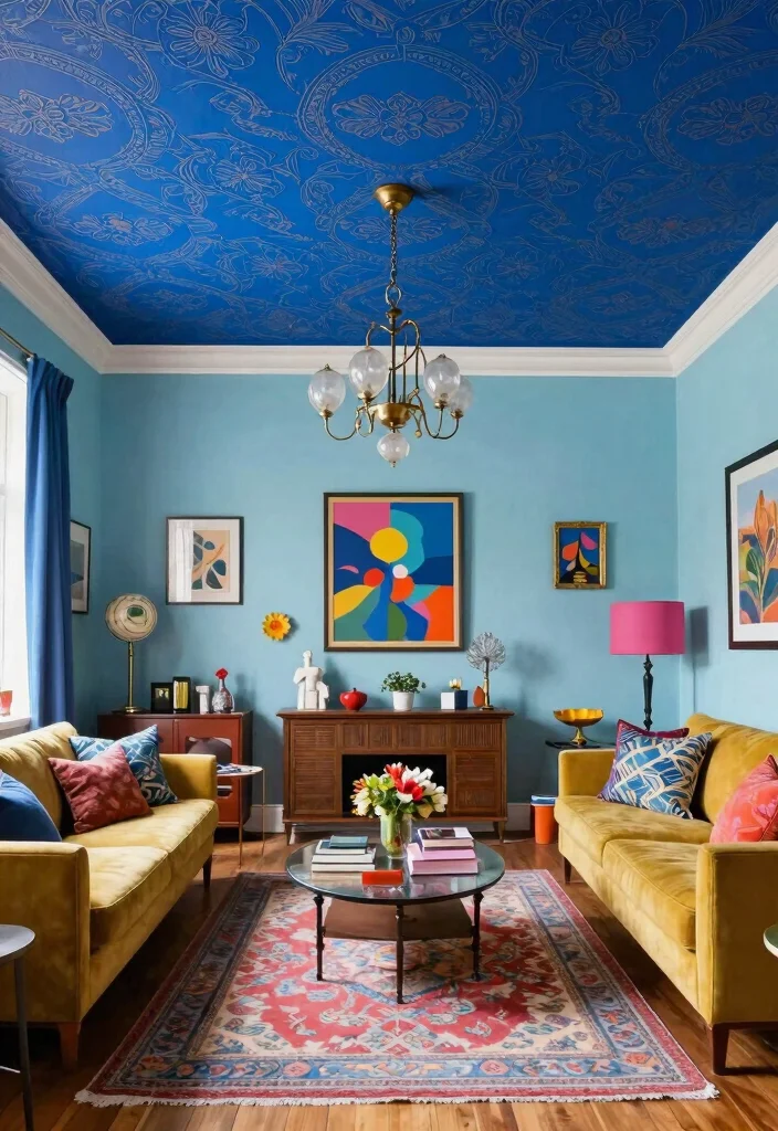 To successfully implement a bold color ceiling, select shades that resonate with your home’s overall theme. Balance the vibrancy with lighter furniture or decor to prevent overwhelm. Accessorizing with contrasting colors can enhance the visual appeal, while decorative lighting adds ambiance.