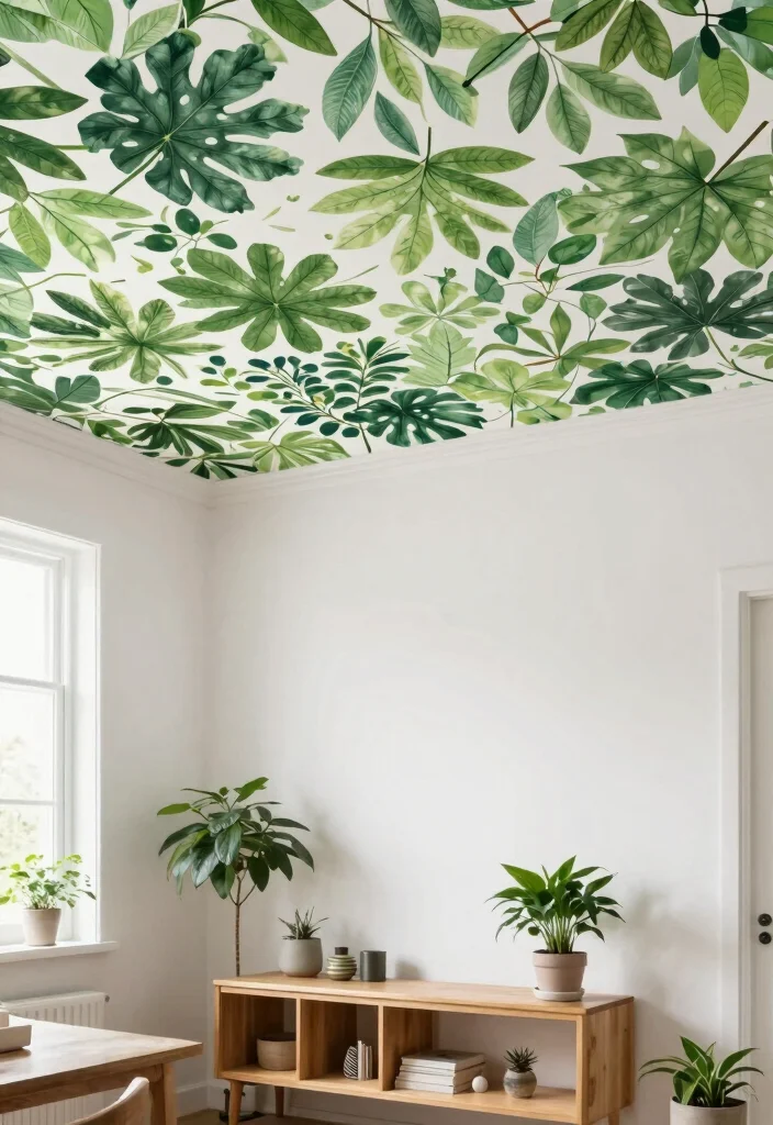 Fun fact: 7 out of 10 homeowners report bedrooms feel 30% calmer with nature-inspired wallpaper ceilings. Natural hues like greens and browns pair best with wood textures for instant serenity. To start with wallpaper ceiling ideas, choose patterns that echo leaves or branches and keep the palette calm.