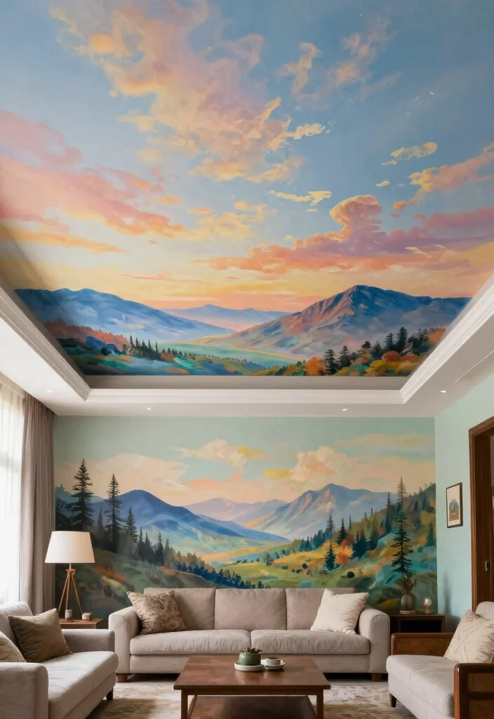 Artistic murals can turn an ordinary ceiling into a breathtaking masterpiece, showcasing your individuality.