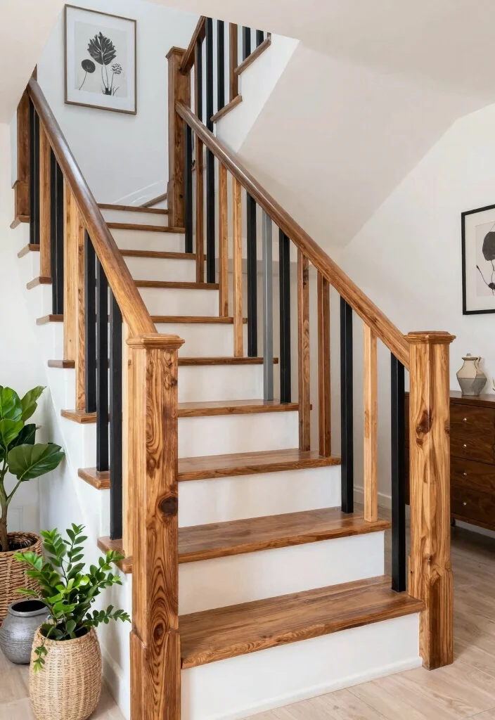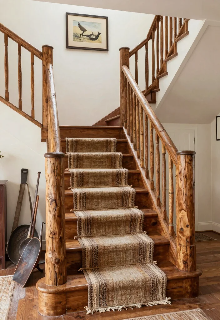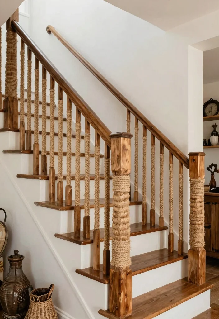 How can I incorporate rustic home decor with wooden stair rail ideas without overwhelming the space?