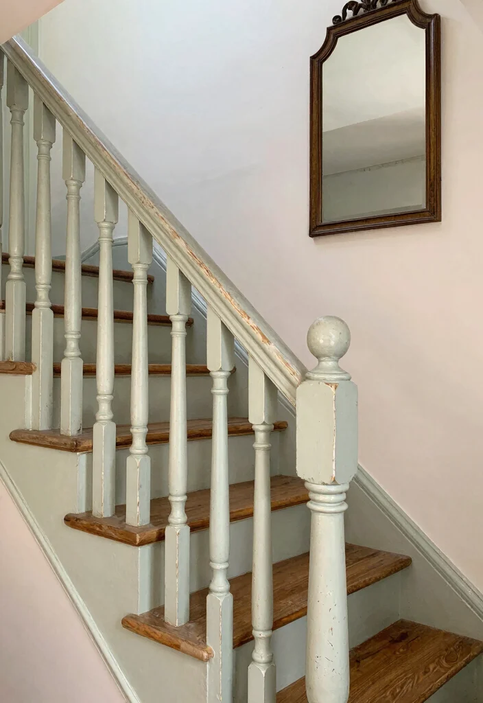 For a vintage touch with a modern twist, distressed painted railings can be a delightful addition. These railings feature soft colors that are then distressed to reveal the wood beneath, creating a charming aged look. Picture these paired with rustic furniture, making your staircase a delightful focal point in your home.