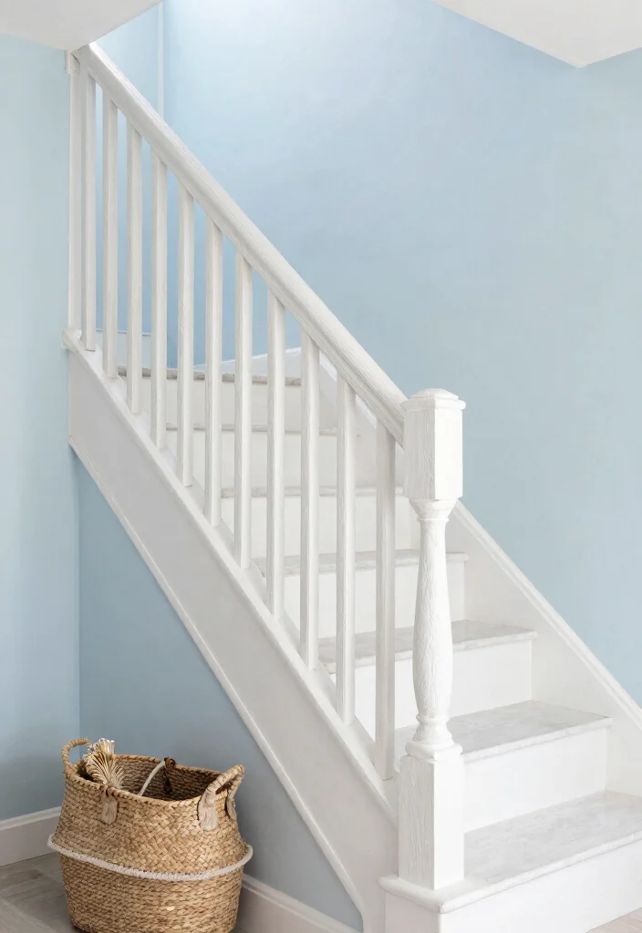 If your heart leans towards coastal aesthetics, whitewashed driftwood railings can transform your staircase into a serene retreat. These railings, with their light and airy appearance, evoke the essence of beachside living while allowing the natural wood grain to shine through. Imagine these paired with soft pastels or crisp whites, creating a fresh and inviting space.