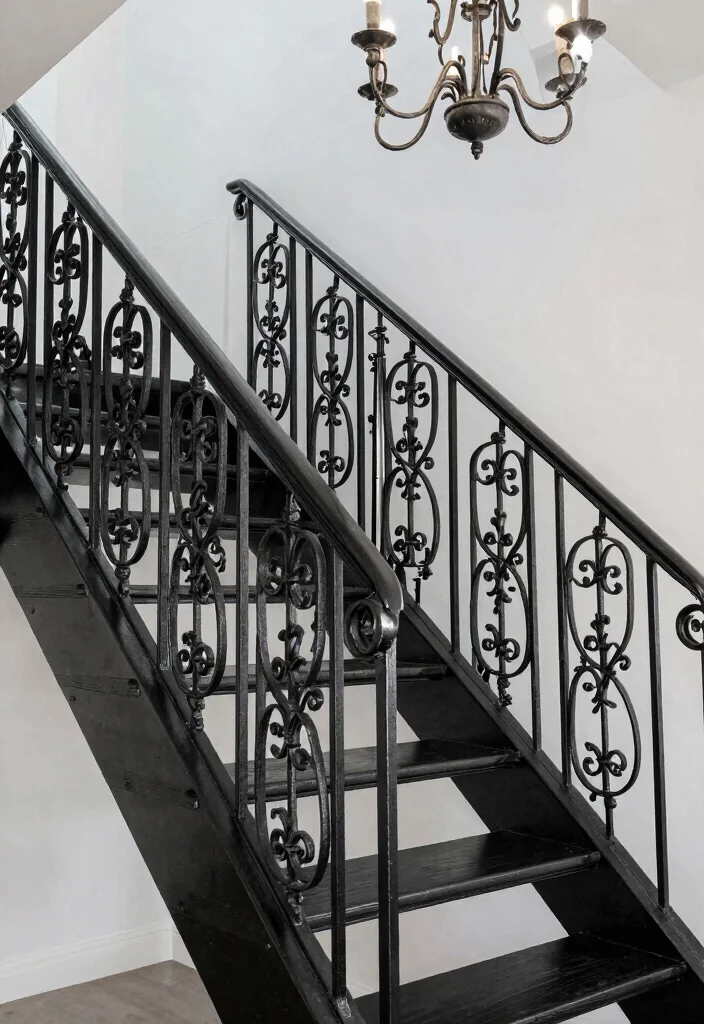 Introduce a touch of elegance with wrought iron railings that showcase intricate designs and craftsmanship. These railings can feature beautiful curls and patterns that enhance the overall aesthetic of your staircase. Imagine these paired with wooden steps for a sophisticated contrast that stands the test of time.